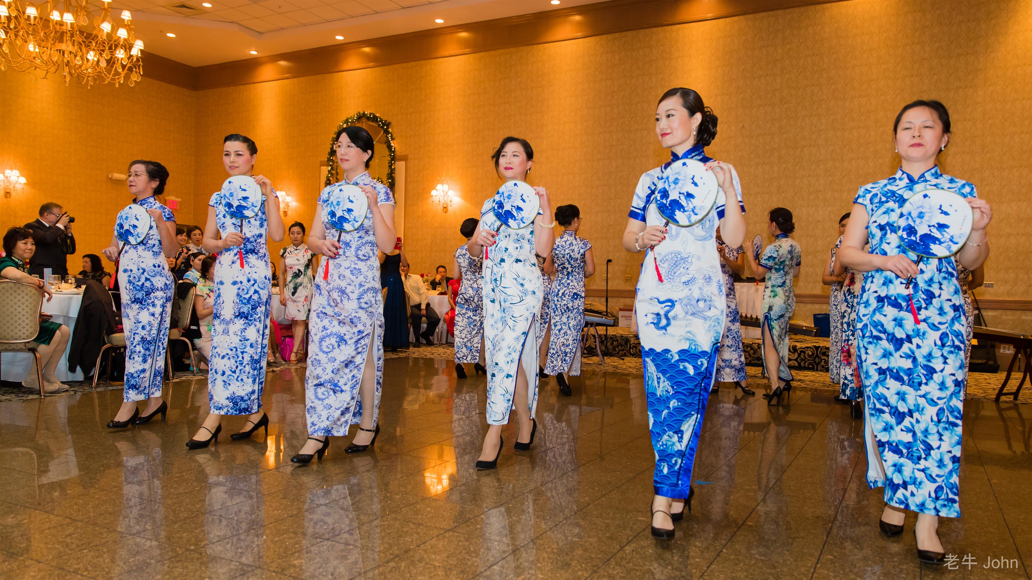 旗袍秀《青花瓷》的设计有独到之处,Lili组织排练花了不少心思,清一色的“青花瓷”旗袍让人眼前一亮。据说这次表演之后受到不少团体的邀请。