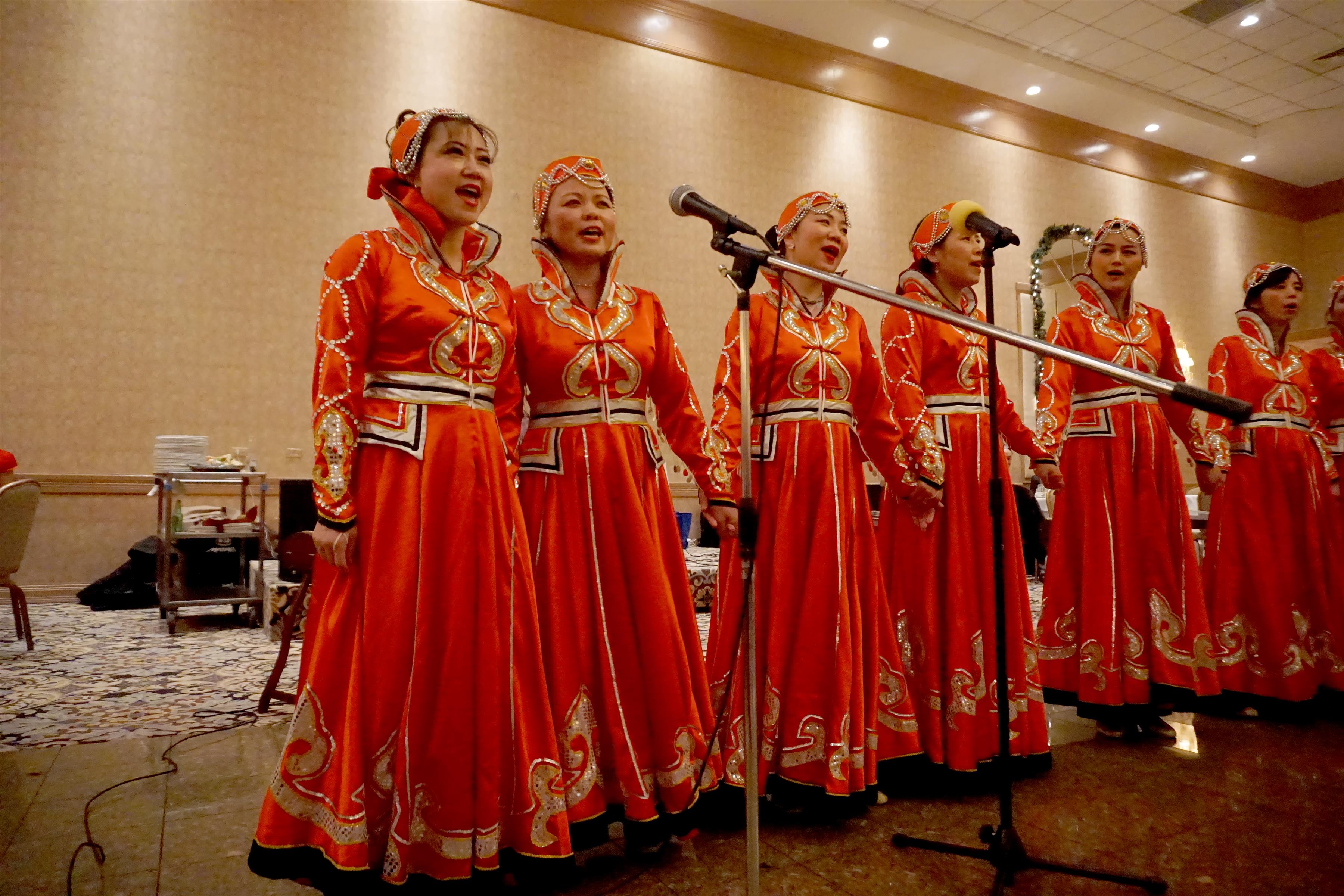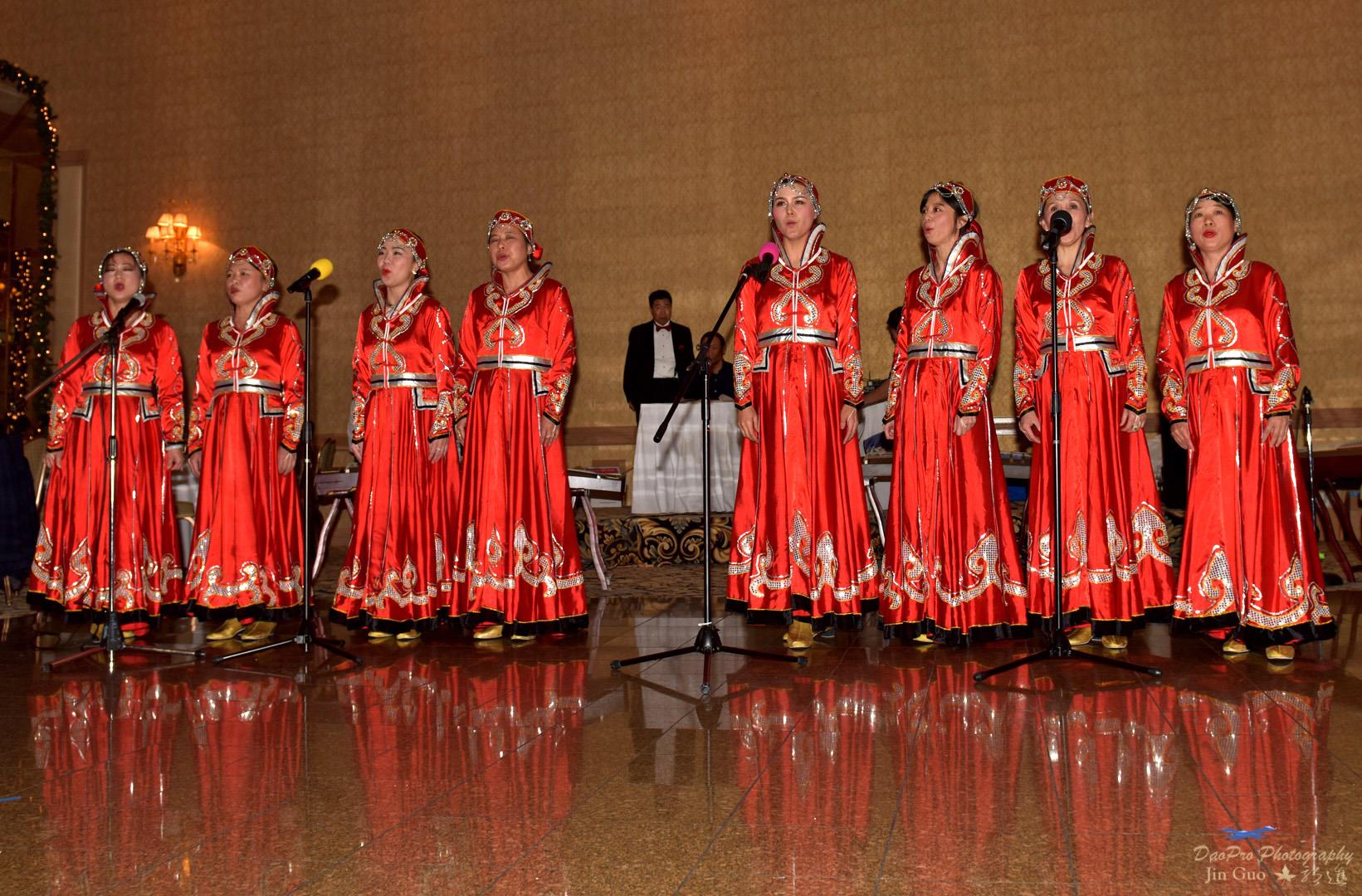 合唱《天边》,是张老师带领的合唱班的表演。看看她们这艳丽的蒙古服和出场的架势,就知道她们做了非常精心的准备。